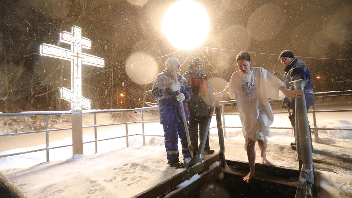 Важно учитывать, что температура воды в московских водоемах держится около четырех градусов. При таких условиях рекомендуемая продолжительность погружения не должна превышать 40 секунд, что вполне достаточно для совершения традиционного обряда.
