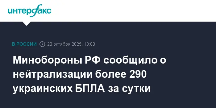 Минобороны РФ сообщает о более 290 уничтоженных БПЛА Украины за сутки