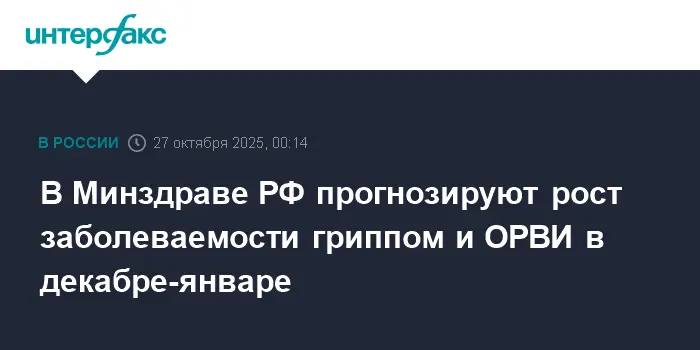 В осенне-зимний период эксперты Минздрава РФ прогнозируют возможный рост числа случаев заболеваний гриппом и ОРВИ. По оценке главного внештатного специалиста по инфекционным болезням Минздрава России Владимира Чуланова, ситуация на данный момент остаётся контролируемой и благоприятной благодаря активной иммунизации населения.