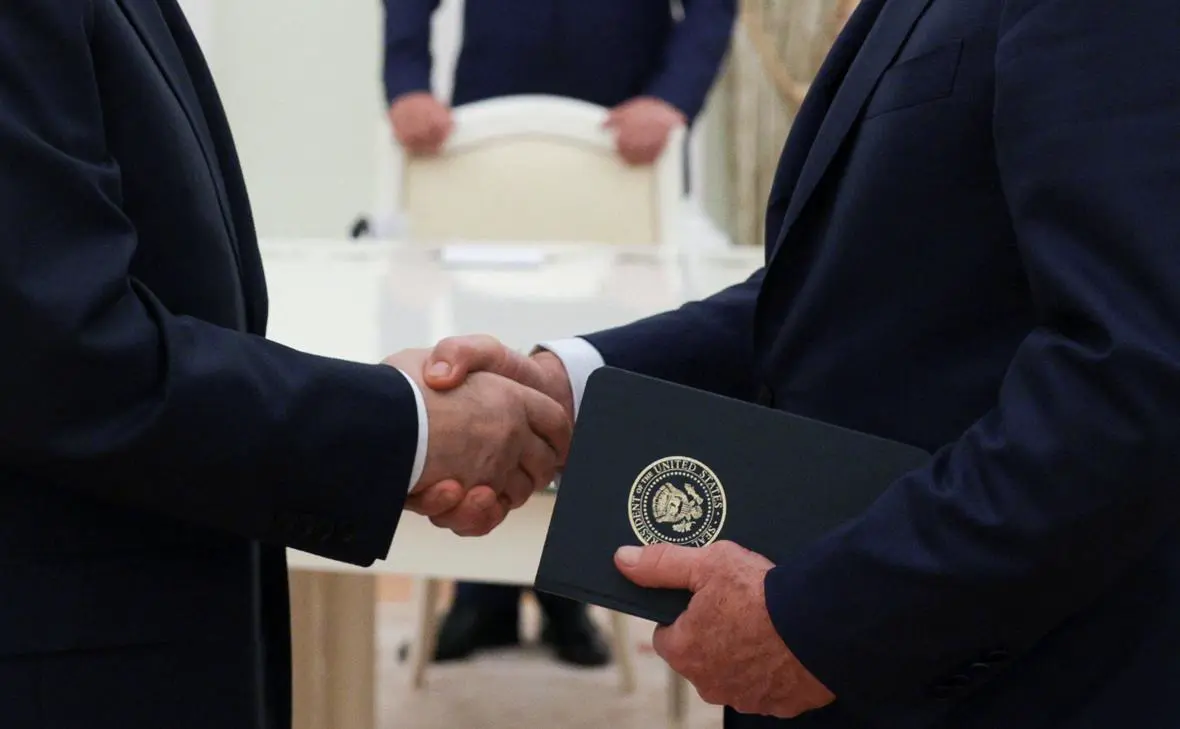 Владимир Путин пожимает руку Стиву Виткоффу во время встречи в Москве, 6 августа 2025 года Фото: Гавриил Григоров / Sputnik / Reuters