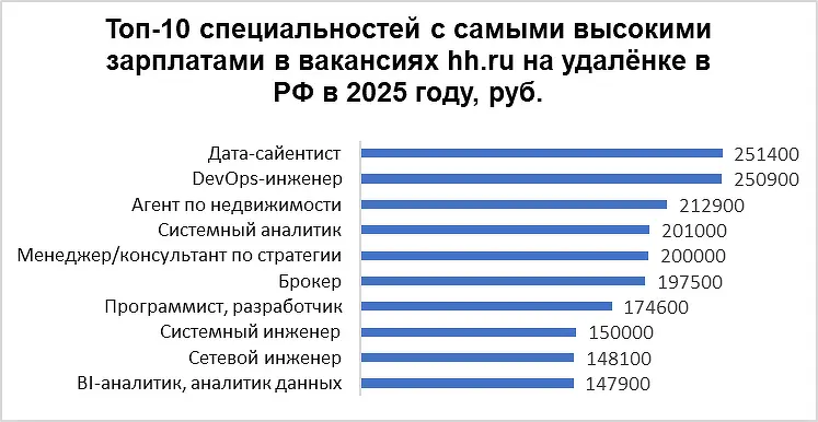 - Дата-сайентист (медианная зарплата 251.4 тыс. руб.)